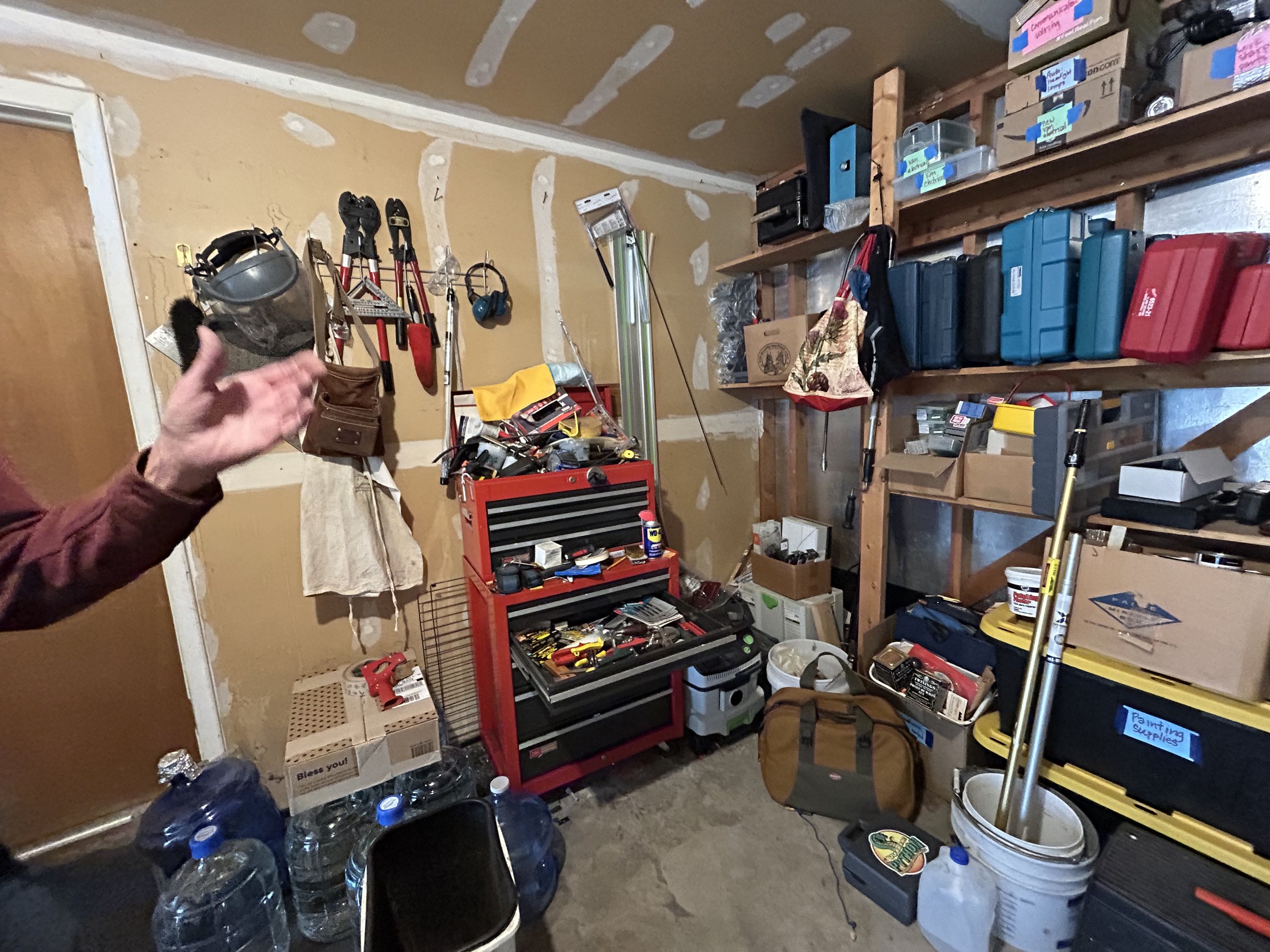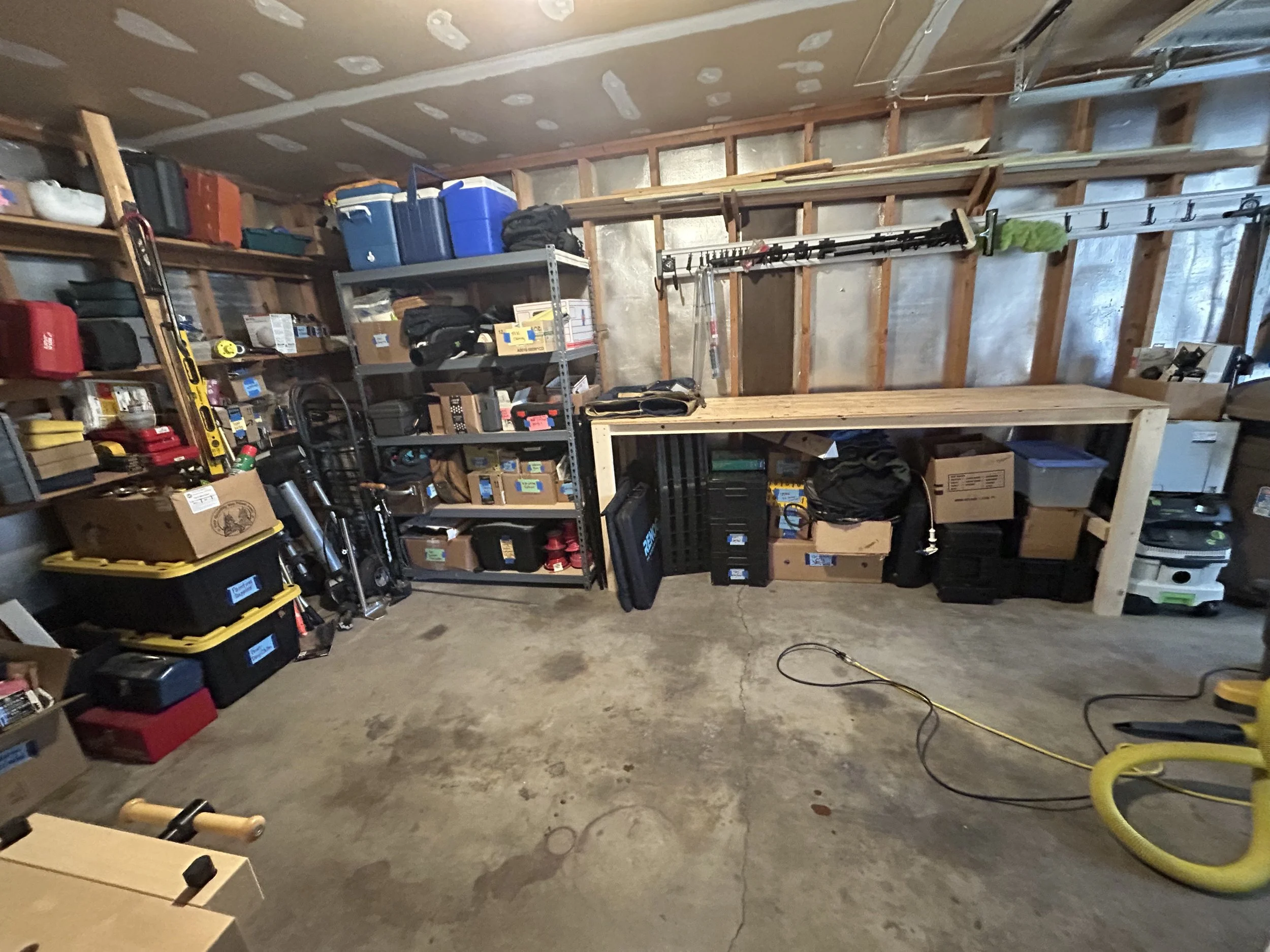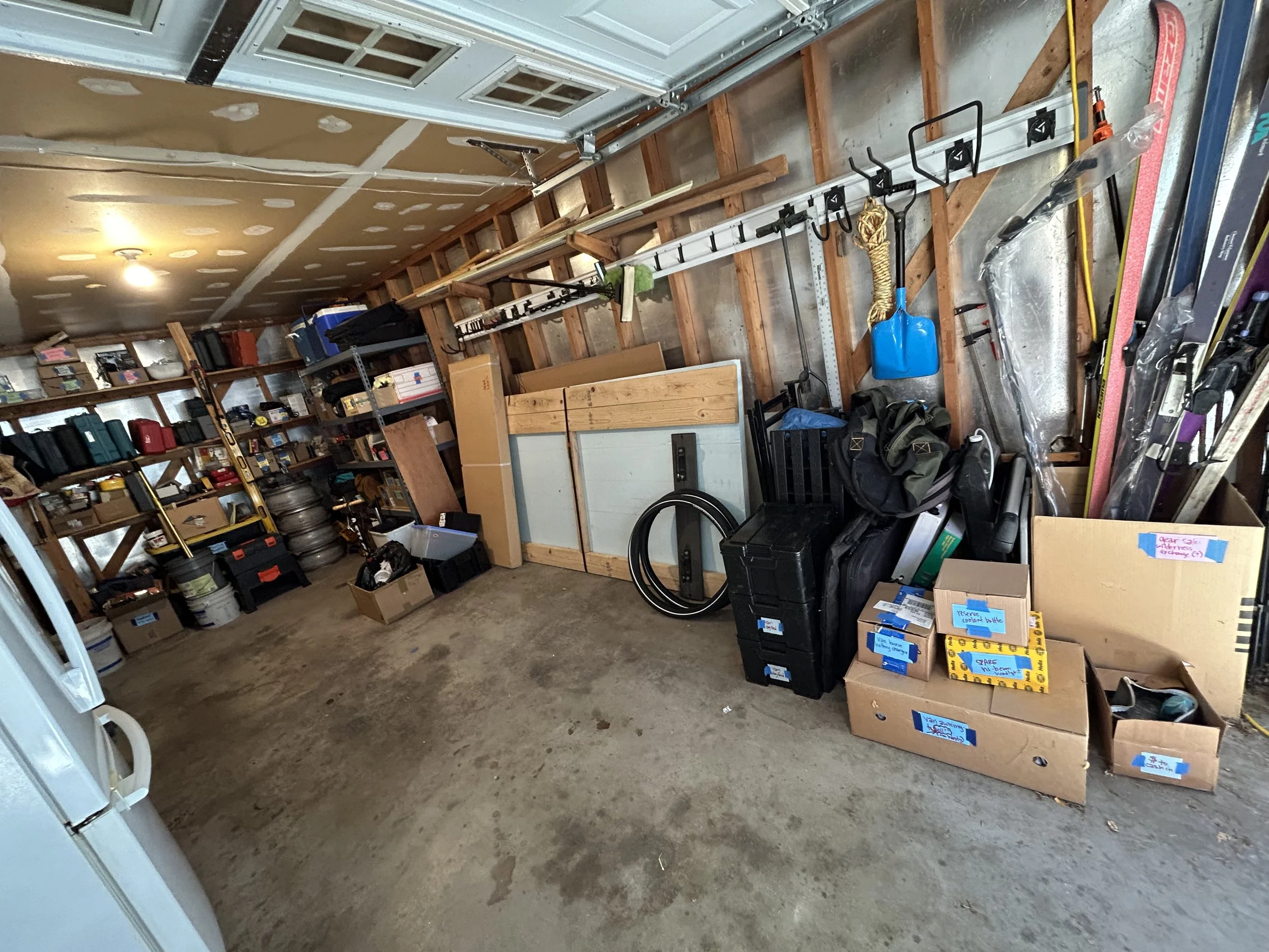 After living in this home for over 20 years without adequate staging tables in the garage, life changes prompted a fresh beginning for this older client. After losing his beloved wife and then approaching a serious surgery that would limit how he would get around, we made the case for table-height surfaces with which to stage and process all the things that usually ended up on the garage floor. We unearthed a most excellent work bench that needed to be assembled, and built two work tables from existing lumber, for better flow in and out of the house, as well as processing camping road trips out of the classic VW van. Lots of tools, gear, and household supplies that have long been shuffled from one chaotic pile to the next (never knowing where anything really was). Our next phase will tackle the shed, to better organize yard equipment and sports gear, once the surgery heals and weather is warm again. Also more refinement and organization of tools, once a deeper assessment of what’s still relevant can be made.