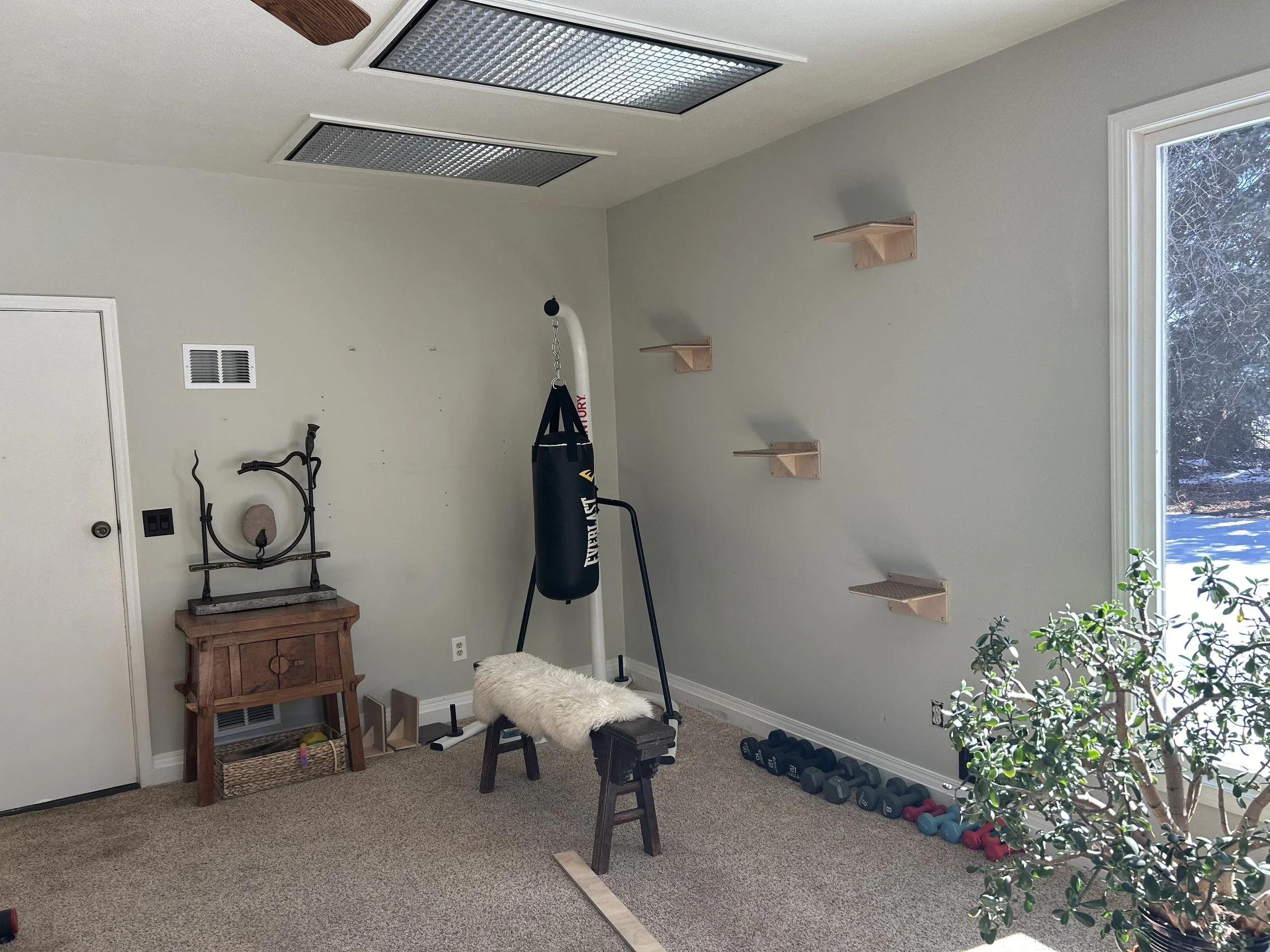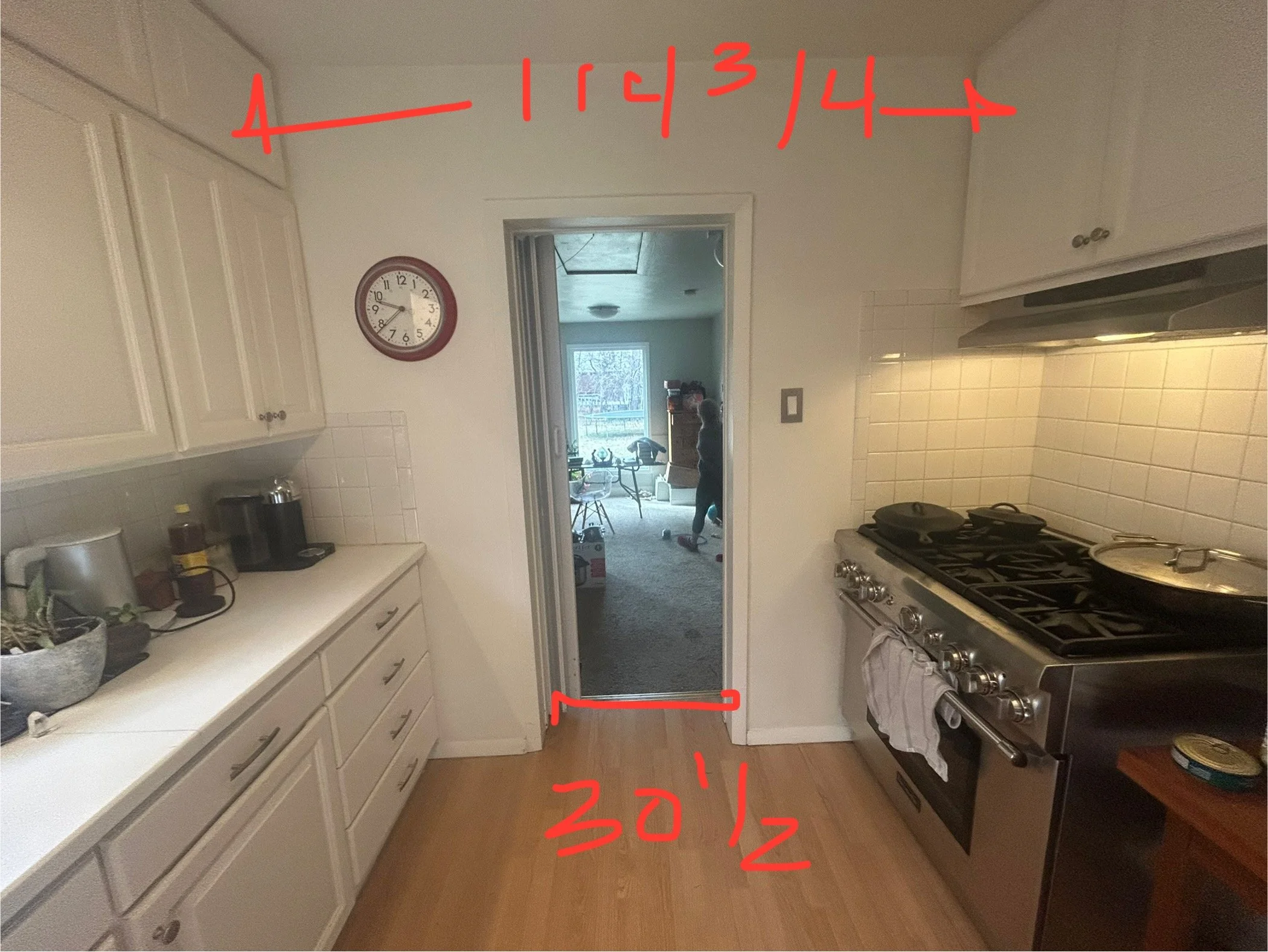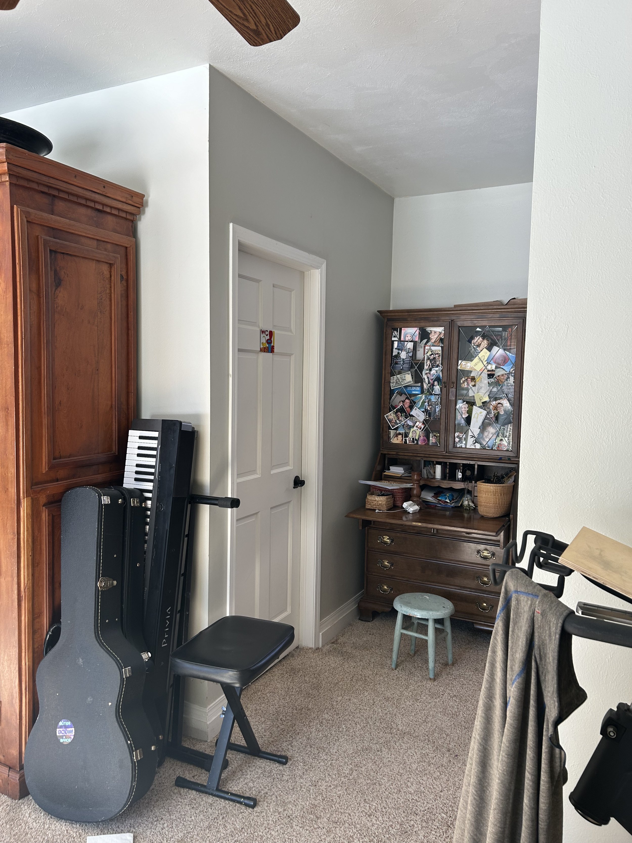 What was just the “back room,” once a sun porch off the original old farmhouse; it was a clutter staging ground for projects, plants, and animals… and also the client’s office, which had been wide open to this bigger back room (until we put a door up last year). The built-in lighting was all over the place without coherence, with huge, different, and outdated fixures. The carpet was impacted by many years of animals, so some light remediation was necessary. We’d been talking about upgrading the space for a good year, knowing we’d eventually get to the kitchen, so were thinking of creating a more inviting area with better light and flow between the kitchen and great room. In all honesty, we mostly knew what we were going for when we started, but it took some real-time design workshopping to dial things in.